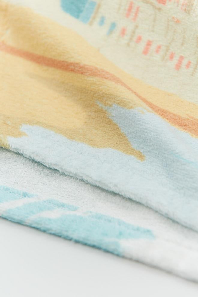 Inspired by the surf culture of Hossegor, the French and European birthplace of surfing, this baby poncho features a lovely pattern depicting the buildings of La Centrale, seen from the famous wave of La Gravière.